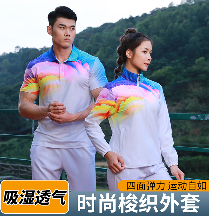 - 款号:88349(男) 88350(女) 面料:提花阳离子 颜色:绯红、天蓝、翡青、蓝灰、胭紫