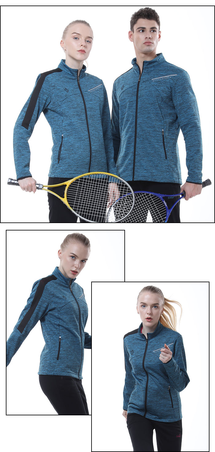 设计:这款时尚运动上衣是思腾针对高端专业人士设计的,服装整体风格简约,在拉链,左右袖口外侧分别采用黑织带点缀,色调干净利落,蓝与黑相互映衬使复古和时尚得到完美体现;前左肩下方反光印花,具有强烈的“醒目”效应,在夜晚也能发挥如同白天一样的高能见度,时尚安全。