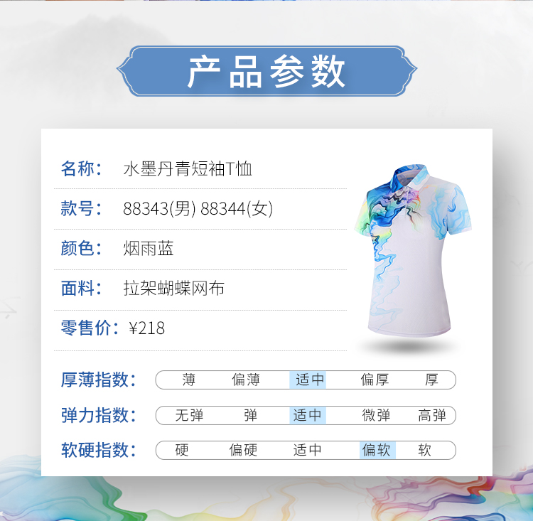 * 表示必填采购:中国风水墨丹青春夏新款男女运动短袖t恤88343/88344团购定制